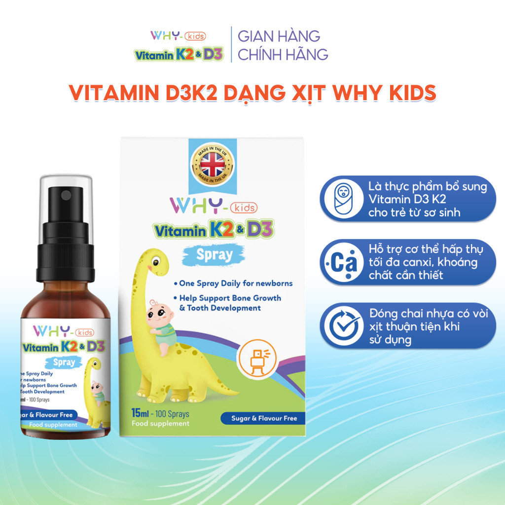 - Tên sản phẩm: Xịt bổ sung Vitamin D3/K2D3 WHYkids
