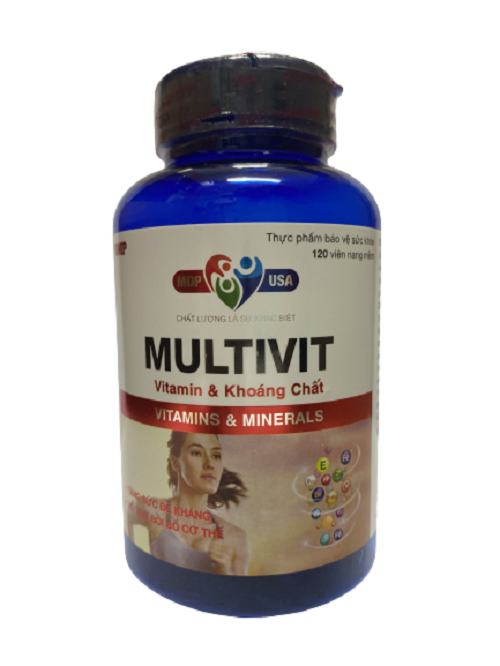 Vitamin đóng vai trò quan trọng, giúp duy trì các chức năng sống của cơ thể một cách ổn định và hiệu quả. Cơ thể không thể tự tổng hợp vitamin, chính vì vậy phải tăng cường bổ sung từ bên ngoài bằng cách cải thiện chất lượng bữa ăn và sử dụng thêm viên uống vitamin có trong Multivit. Thành phần Multivit Softgels Mỗi viên nang mềm chứa: Calci Carbonate ……………………………………………. 80 mg Vitamin C …………………………………………………… 50 mg Sắt (II) Fumarat …………………………………………… 30 mg Vitamin PP ………………………………………………… 7 mg Vitamin B6 ………………………………………………… 1.5 mg Vitamin B1 ………………………………………………… 1.5 mg Vitamin E …………………………………………………… 1 mg Axit Folic ………………………………………………… 200 mcg Vitamin B12 ………………………………………………… 2 mcg Công dụng Multivit Softgels Giúp bổ sung nhu cầu Vitamin và khoáng chất cần thiết cho cơ thể, hỗ trợ bồi bổ cơ thể, tăng sức đề kháng, cải thiện hệ thống tiêu hóa, giúp cơ thể khỏe mạnh. Giúp bổ sung nhu cầu Vitamin và khoáng chất cần thiết cho phụ nữ có kế hoạch mang thai, phụ nữ mang thai (Multivit cho bà bầu) phụ nữ đang cho con bú, giúp giảm triệu chứng buồn nôn, nôn khi thai nghén. Giảm thiểu và ngăn ngừa các nguy cơ như loãng xương, thiếu máu, rối loạn hệ thần kinh, và hệ miễn dịch kém do thiếu hụt khoáng chất. Giảm các tình trạng căng thẳng quá độ (stress), lo âu làm việc trí óc. Đối tượng sử dụng Multivit Softgels Phụ nữ có thai và cho con bú. Người có nhu cầu bổ sung vitamin và khoáng chất do chế độ ăn thiếu hụt. Trẻ em đang trong độ tuổi phát triển, người già yếu, người mới ốm dậy cần phục hồi sức khỏe. Thời hạn sử dụng 36 tháng kể từ ngày sản xuất. Hạn sử dụng được ghi cụ thể ở mỗi hộp. Cách đóng gói và bảo quản Hộp 120 viên nang mềm Bảo quản nơi khô ráo, thoáng mát. Tránh xa tầm tay trẻ em. Lưu ý: Thực phẩm này không phải là thuốc và không có tác dụng thay thế thuốc chữa bệnh. Không dùng cho người mẫn cảm với bất kỳ thành phần nào của sản phẩm.