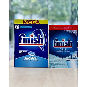 Combo: Viên rửa bát Finish 110 viên + Muối Rửa Bát Finish 1.5kg - Là combo chất tẩy rửa "Đơn giản và Hiệu quả", thương hiệu của CHLB Đức và sản xuất tại Liên minh