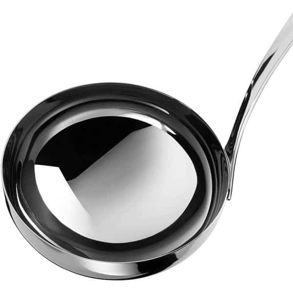 Dễ dàng loại bỏ thực phẩm như bánh cuốn nhờ đường cong nông Chất lỏng dư thừa dễ dàng thoát qua các khẩu độ lớn Một chiếc muôi hớt bọt là thiết bị nhà bếp
