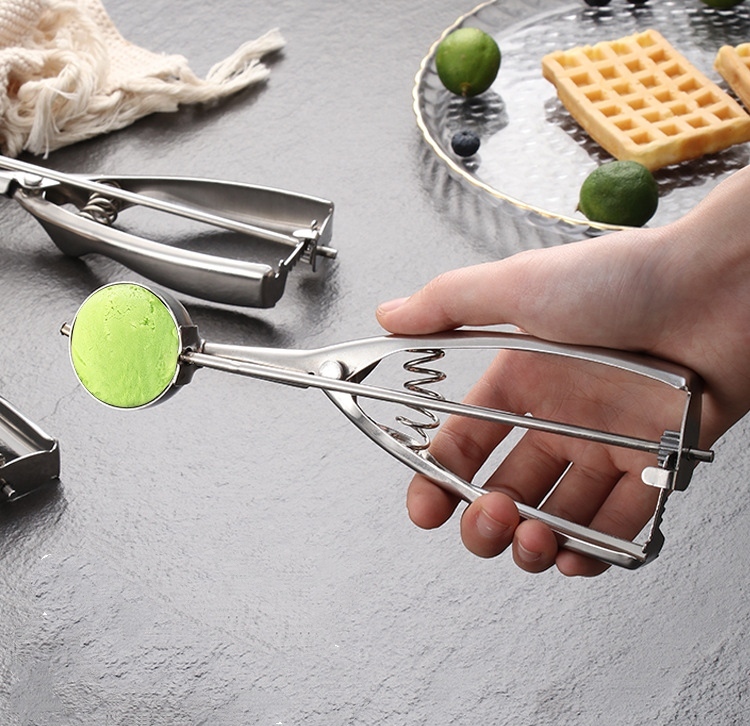 - Muỗng múc kem đa năng dùng để múc kem, tạo hình thịt viên, múc trái cây…dễ sử dụng và dễ vệ sinh, là dụng cụ cần thiết của mọi gia đình.