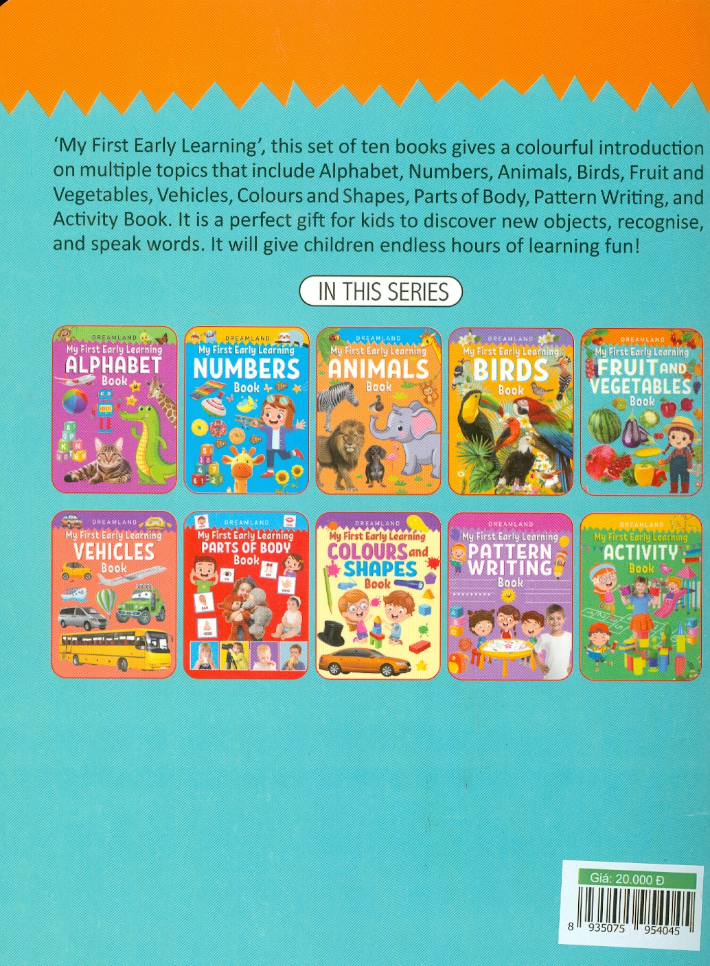 Mua tại Tiktok'My First Early Learning' gồm 10 cuốn sách:- Bảng chữ cái, Số, Động vật, Chim, Trái cây và Rau củ, Màu sắc và Hình dạng, Các bộ phận của Cơ thể, Viết theo Mẫu và Hoạt động. Bộ sách vui nhộn và mang tính giáo dục với những hình ảnh dễ thương sống động này là sự lựa chọn tốt nhất cho trẻ em.
