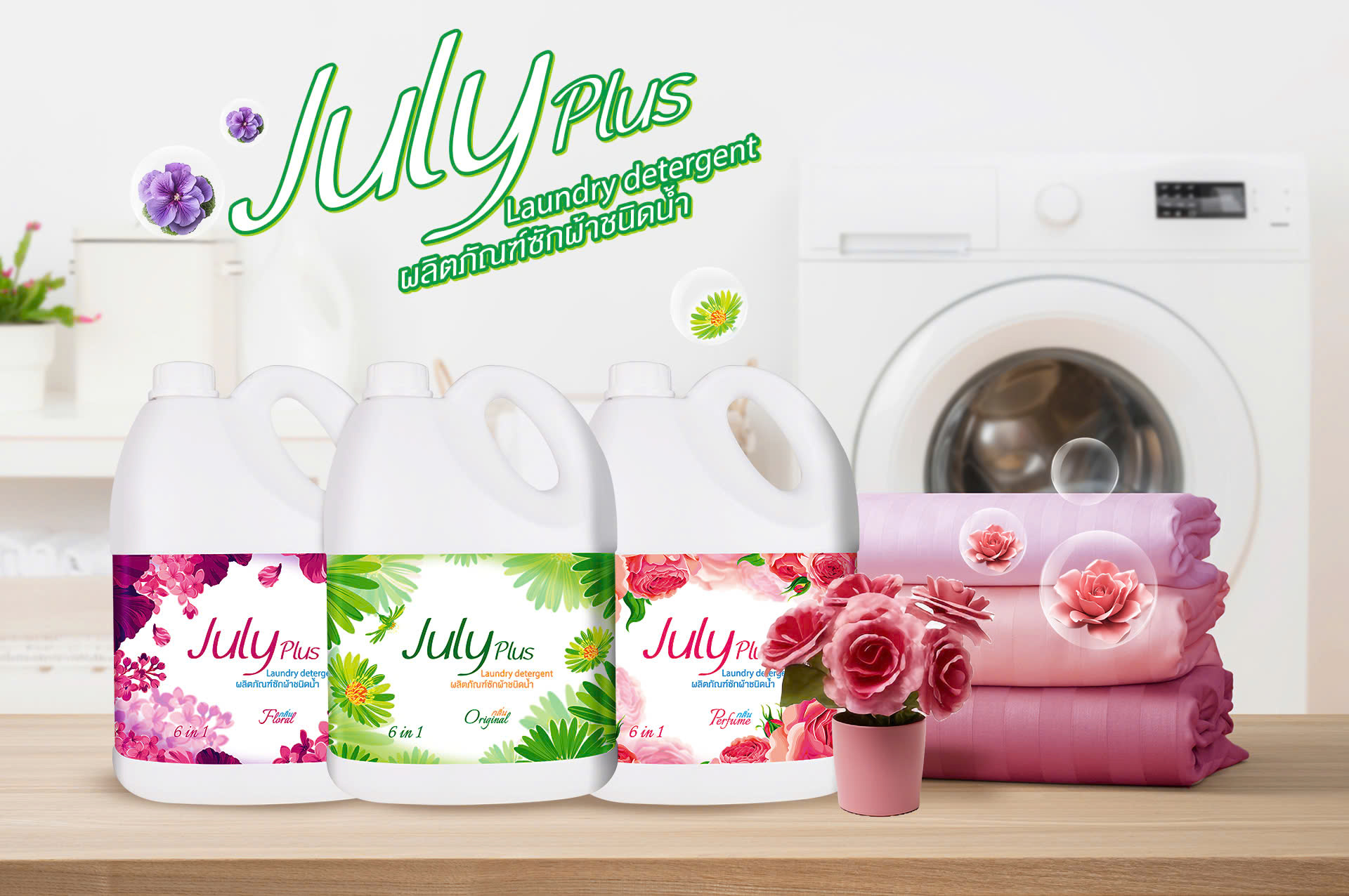 NƯỚC GIẶT XẢ THÁI LAN CAO CẤP JULY PLUS 6IN1 CAN 3.5L Sản phẩm được nhập khẩu chính hãng từ Thái Lan ❉ Xuất xứ: Thái Lan | Made in Thailand ❉ NSX: Siam Famous
