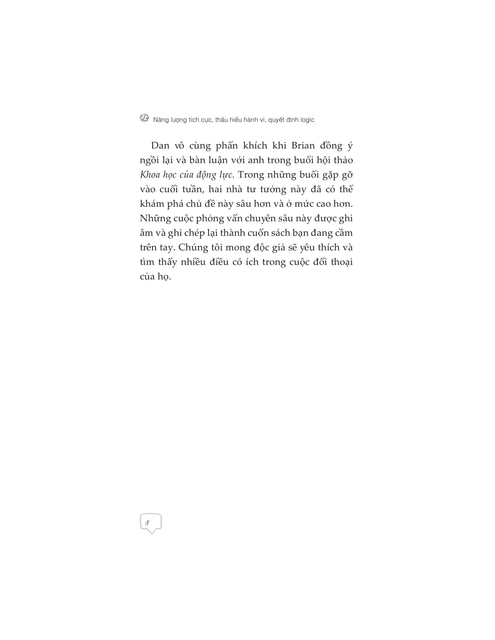 “Năng lượng tích cực, thấu hiểu hành vi, quyết định logic” sẽ giúp bạn hiểu cụ thể hơn về những quy tắc và các bước quan trọng trong việc biến kỹ năng gây ảnh hưởng trở thành thói quen trong cách suy nghĩ cũng như hành động, giúp bạn mở ra cánh cửa thành công trong sự nghiệp và cuộc sống.