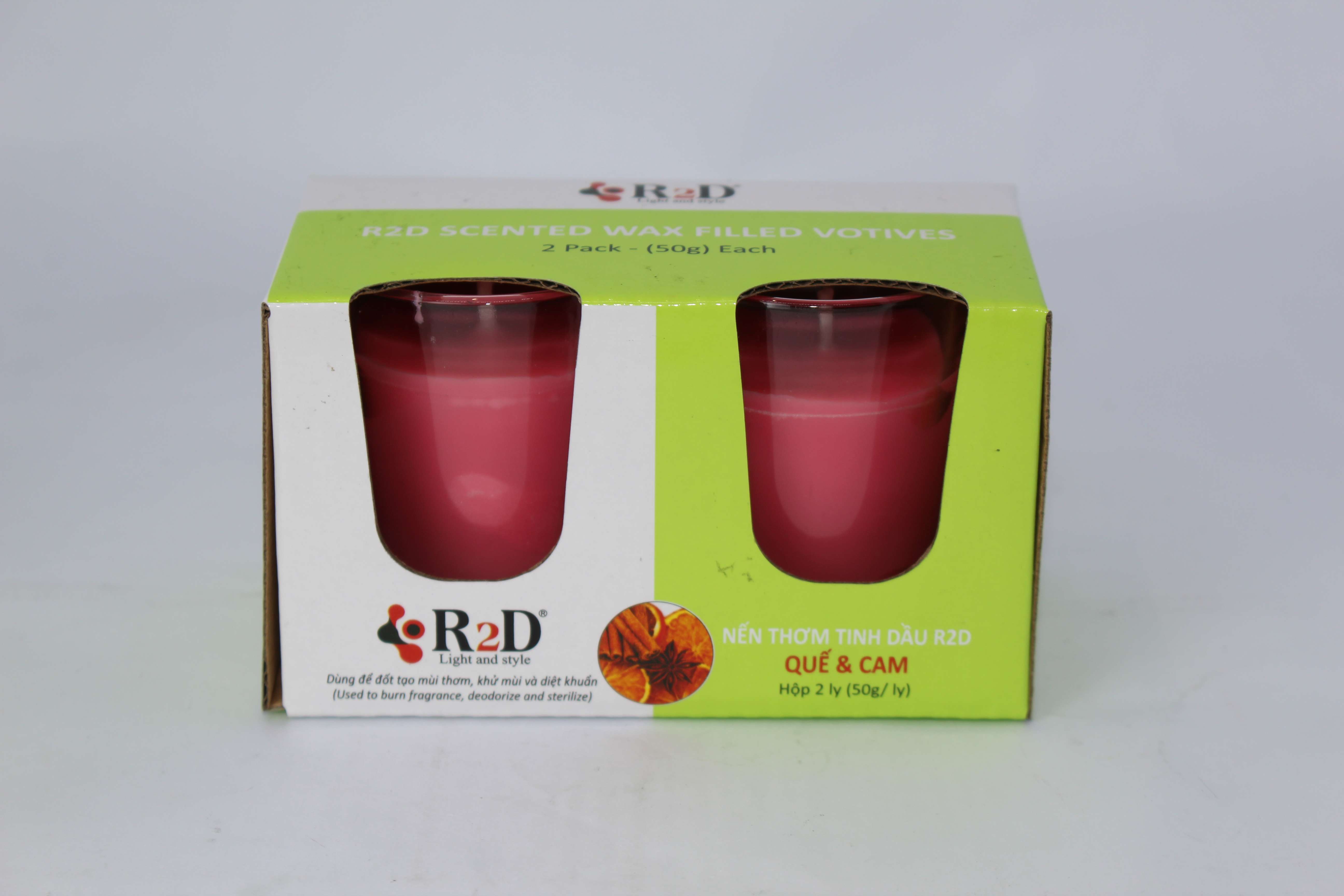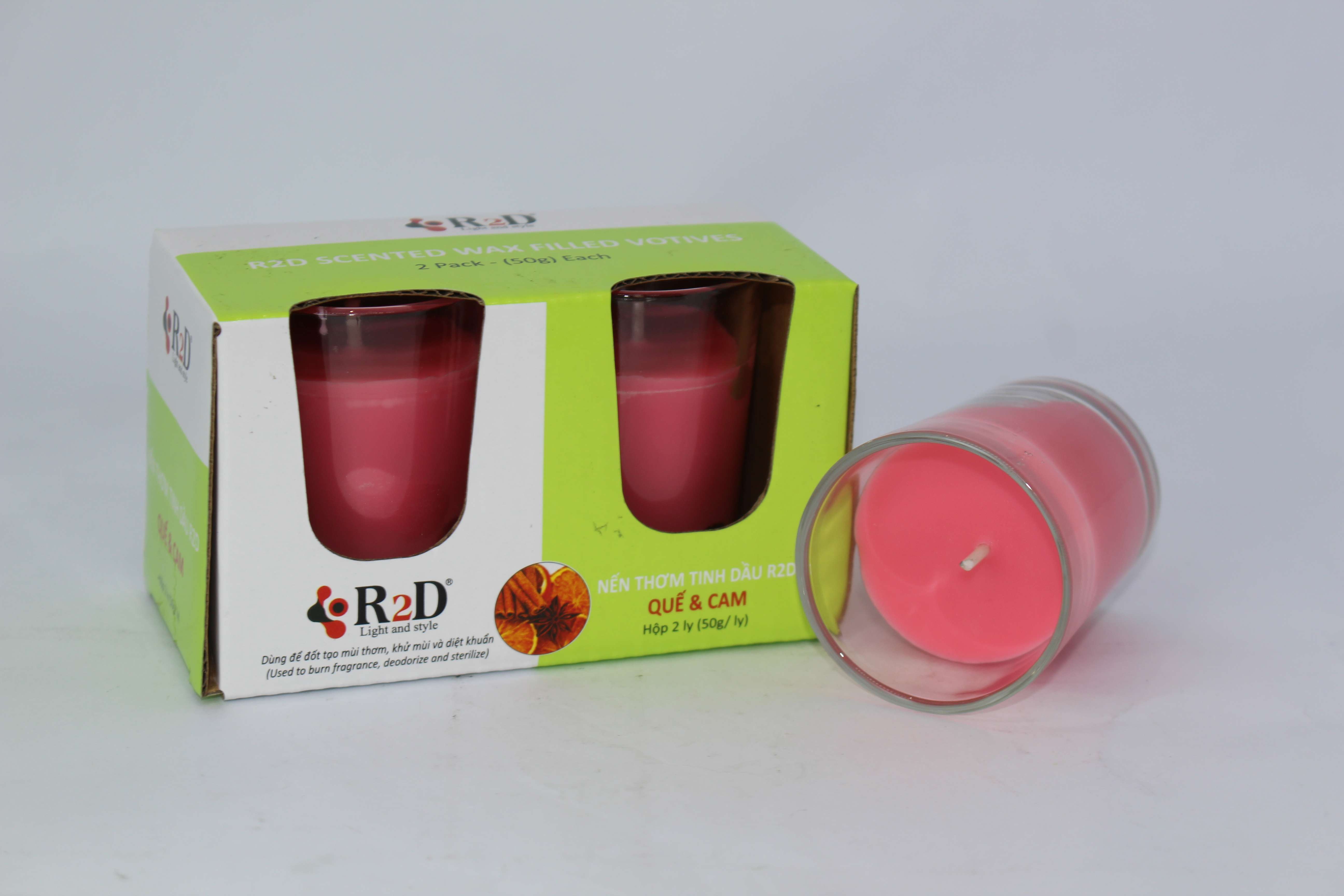 ✨Nến Thơm, Tinh Dầu Quế Cam, [Ly 50g-Hộp 2 ly], Chính Hãng Từ Shop R2D, Thành Phần Tự Nhiên, Lành Tính.