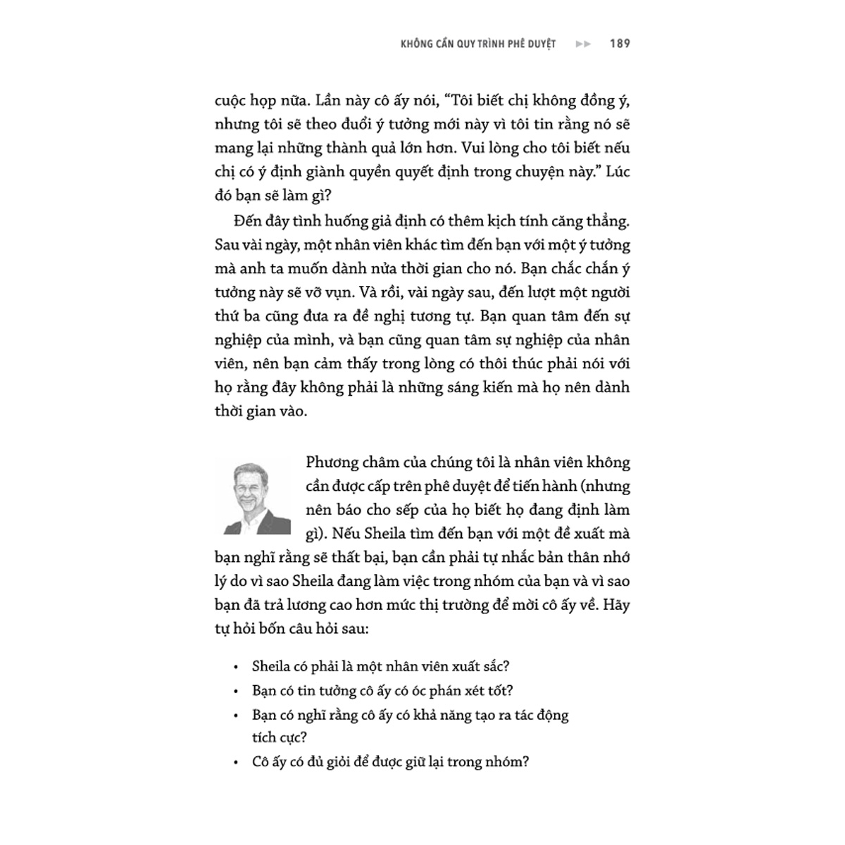 Tự do thay vì kiểm soát– Loại bỏ các quy định chi tiêu, nghỉ phép; thay vào đó truyền bối cảnh để nhân viên tự chủ trong quyết định.