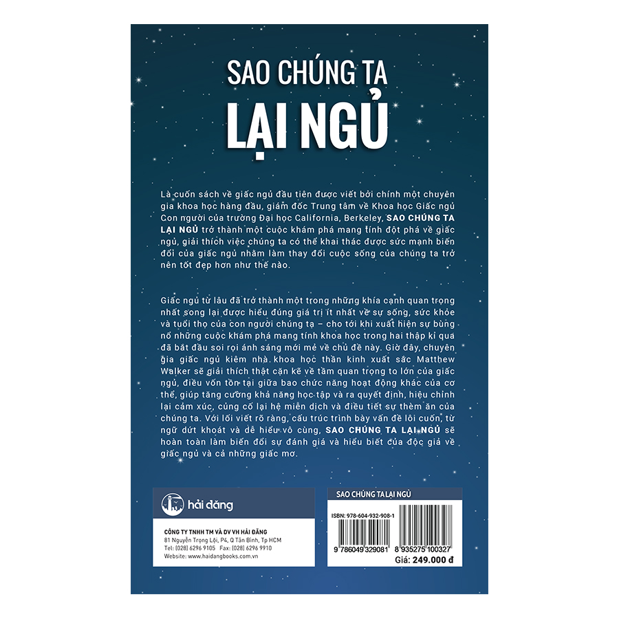 Là cuốn sách về giấc ngủ đầu tiên được viết bởi chính một chuyên gia khoa học hàng đầu, giám đốc Trung tâm về Khoa học Giấc ngủ Con người của trường Đại học California, Berkeley, Sao chúng ta lại ngủ trở thành một cuộc khám phá mang tính đột phá về giấc ngủ, giải thích việc chúng ta có thể khai thác được sức mạnh biến đổi của giấc ngủ nhằm làm thay đổi cuộc sống của chúng ta trở nên tốt đẹp hơn như thế nào.