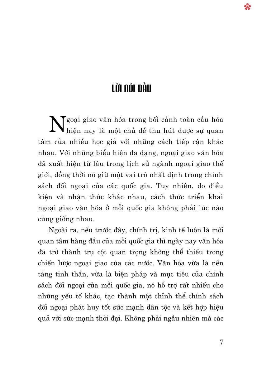 Để cung cấp một góc nhìn mới và hệ thống tư liệu về cách thức nước Mỹ sử dụng, triển khai công cụ văn hóa để thực hiện mục tiêu nâng cao hình ảnh của nước Mỹ, nhất là trong bối cảnh hiện đang có sự tranh giành ảnh hưởng và quyền lợi giữa các cường quốc ở khu vực trong kỷ nguyên hậu Chiến tranh lạnh, Nhà xuất bản Chính trị quốc gia Sự thật xuất bản cuốn sách Ngoại giao văn hóa Mỹ trong hai thập niên đầu thế kỷ XXI của TS. Nguyễn Văn Duẩn - Trường Đại học Khoa học xã hội và nhân văn, Đại học Quốc gia Thành phố Hồ Chí Minh. Cuốn sách giúp người đọc hình dung một cách bao quát về bức tranh ngoại giao văn hóa Mỹ và những đặc trưng cơ bản của ngoại giao văn hóa Mỹ được biểu hiện qua các giai đoạn lịch sử, tập trung vào hai thập niên đầu thế kỷ XXI, với sự cầm quyền của các tổng thống G.W. Bush, Barack Obama và Donald Trump. Xin trân trọng giới thiệu cuốn sách cùng bạn đọc