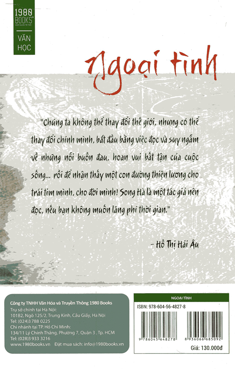 THÔNG TIN XUẤT BẢN: - Công ty phát hành: Nhã Nam - Tác giả: Trần Nghiên Nhất - Dịch giả: Không Sơn - Nhà xuất bản: Hội Nhà Văn - Kích thước: 14 x 20.5cm