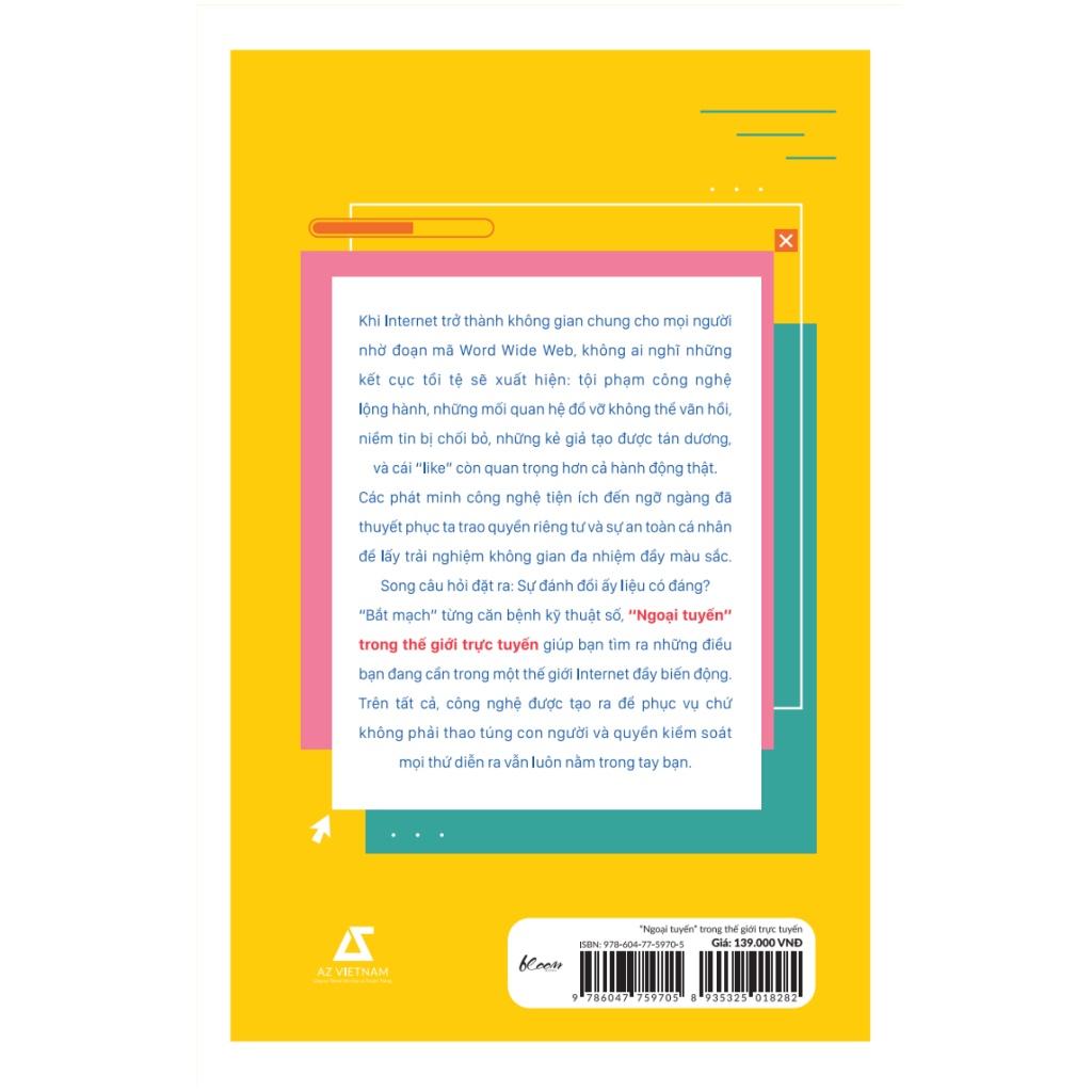 Bạn đã sẵn sàng đánh mất điều gì để có một cuộc sống ngập tràn kết nối? Khi Internet trở thành không gian chung cho mọi người nhờ đoạn mã Word Wide Web, không ai nghĩ những kết cục tồi tệ sẽ xuất hiện: tội phạm công nghệ lộng hành, những mối quan hệ đổ vỡ không thể vãn hồi, niềm tin bị chối bỏ, những kẻ giả tạo được tán dương, và cái “like” còn quan trọng hơn cả hành động thật. Lướt web thay vì lắng nghe người khác (phubbing), hoảng sợ khi không mang điện thoại bên mình (nomophobia), “thỉnh” bác sĩ Goo.gle hơn là đến bệnh viện (cyberchondria)... còn hàng ngàn góc khuất nữa của công nghệ đang hiện diện xung quanh, nhưng điều đáng tiếc là ta đã dần chấp nhận và coi những hậu quả đó là lẽ hiển nhiên. “Bắt mạch” từng căn bệnh kỹ thuật số, “Ngoại tuyến” trong thế giới trực tuyến sẽ cùng bạn khám phá cái giá phải trả mà cuộc sống số gây ra cho sự tồn tại thực của chúng ta. Phát hiện những thói quen có hại và tìm ra chìa khóa của sự cân bằng công nghệ, đồng thời giải quyết các chuẩn mực xã hội mới lạ. Trên tất cả, công nghệ được tạo ra để phục vụ chứ không phải thao túng con người và quyền kiểm soát mọi thứ diễn ra vẫn luôn nằm trong tay bạn. Về tác giả: Tanya Goodin là nhà sáng lập phong trào “giải độc kỹ thuật số” Time To Log Off. Đồng thời cô là một tác giả, diễn giả và là nhà tư vấn cho nhiều công ty, tổ chức, cá nhân về phương pháp sử dụng công nghệ một cách lành mạnh. Cô đã từng xuất hiện trên các chương trình BBC Breakfast, Sky News, CCTV, ITN London News… Và cộng tác với các trang tin tức như The Guardian, The Telegraph, London Evening Standard, Marie Claire, The Daily Mail và The Sun. Hãy theo dõi Tanya tại địa chỉ T.witter @tanyagoodin và Ins.tagram @timetologoff. Độc giả cũng có thể tìm hiểu thêm về công việc của cô tại địa chỉ website và . Gooda tin rằng cuốn sách sẽ mang lại kiến thức thật bổ ích cùng những trải nghiệm thật tuyệt vời, hy vọng đây sẽ là 1 cuốn sách quý trên kệ sách của bạn! QUYỀN LỢI KHÁCH HÀNG KHI MUA SÁCH TẠI SHOP GOODA THƯ VIỆN SÁCH QUÝ: