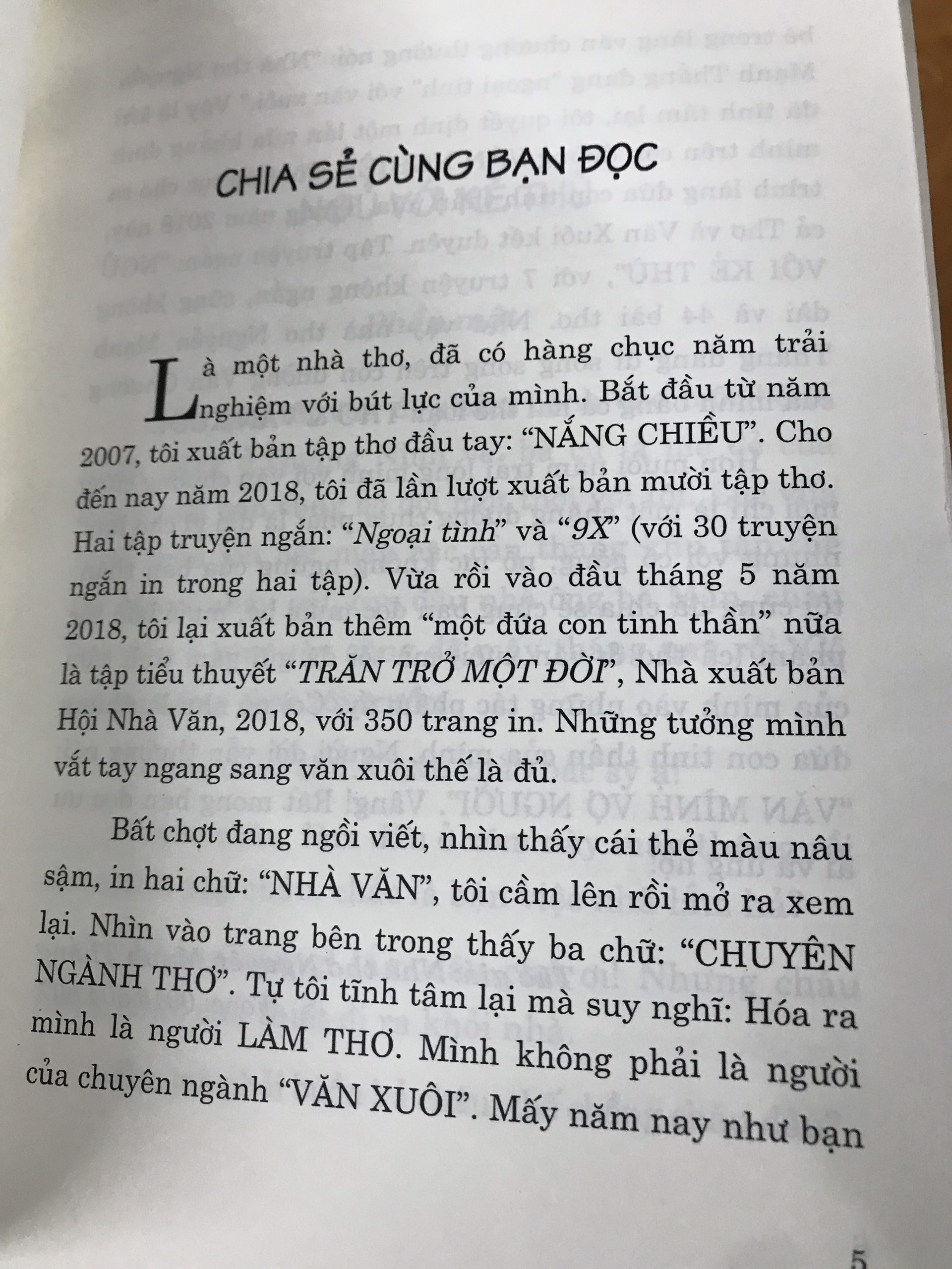 Thư gửi bạn đọc Bạn thân mến, Từ năm 1974 đến năm 2016, tôi đã được các Nhà xuất bản in 8 tập truyện ngắn: Ví dụ ta yêu nhau, Bất ngờ phía trái tim,