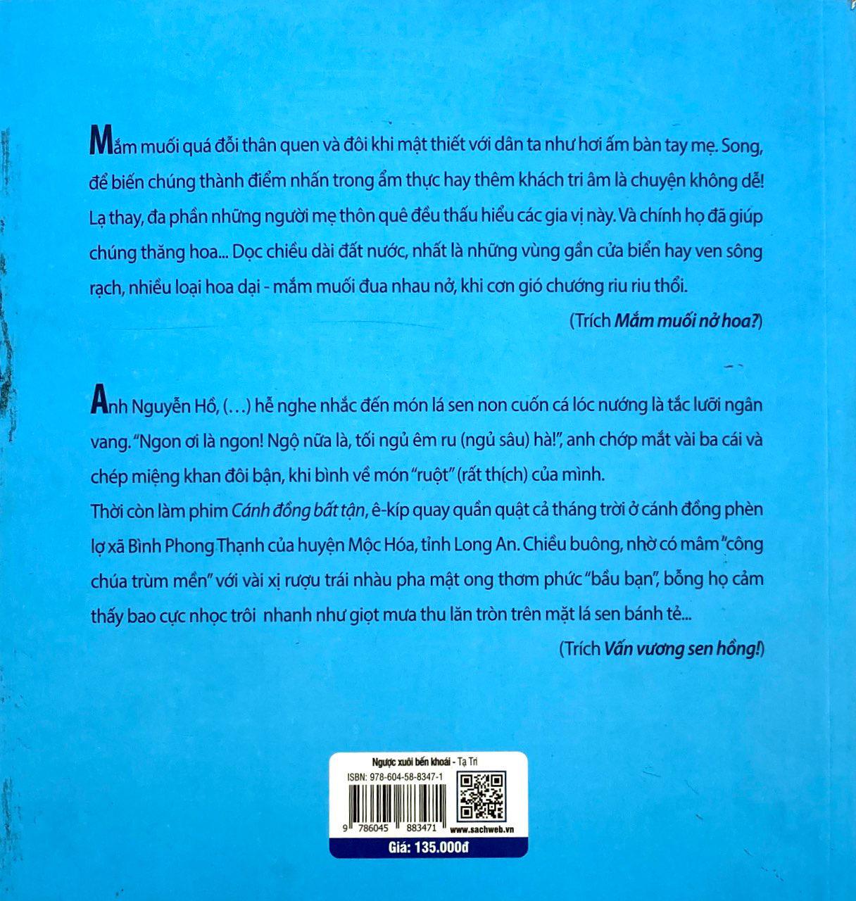 Gần hai mươi năm theo nghiệp viết báo ở Thành phố Hồ Chí Minh, Tạ Tri đã chọn nẻo đường văn hóa - du lịch ẩm thực với niềm đam mê to lớn mà, theo lời chính anh thì “không kém phần khắc nghiệt.” Nhưng nhờ vậy, anh cho ra mắt tập tùy bút ẩm thực đầu tiên của mình. Ngược xuôi bến khoái tập hợp tròm trèm 50 bài viết về những đặc sản hai miền Trung và Nam bộ. Điều thú vị là qua đó, tập tùy bút ẩm thực này đã hé lộ một phần tinh hoa của ẩm thực triều Nguyễn - vốn trước nay, ít có người tiếp cận xuyên suốt và chuyển tải lại với ngôn từ dễ hiểu. Đồng thời, còn đưa ra nhiều giải pháp chế biến khá đơn giản mà tinh diệu, giúp bữa cơm gia đình thêm mới lạ, ngon lành hơn. Uyển chuyển với bộ ba gia vị vừa quen vừa lạ: trà - tương - mắm, nhằm thổi bùng ngọn lửa huyền biến - khơi nguồn sáng tạo cho nhiều ông/ bà tiên bếp.