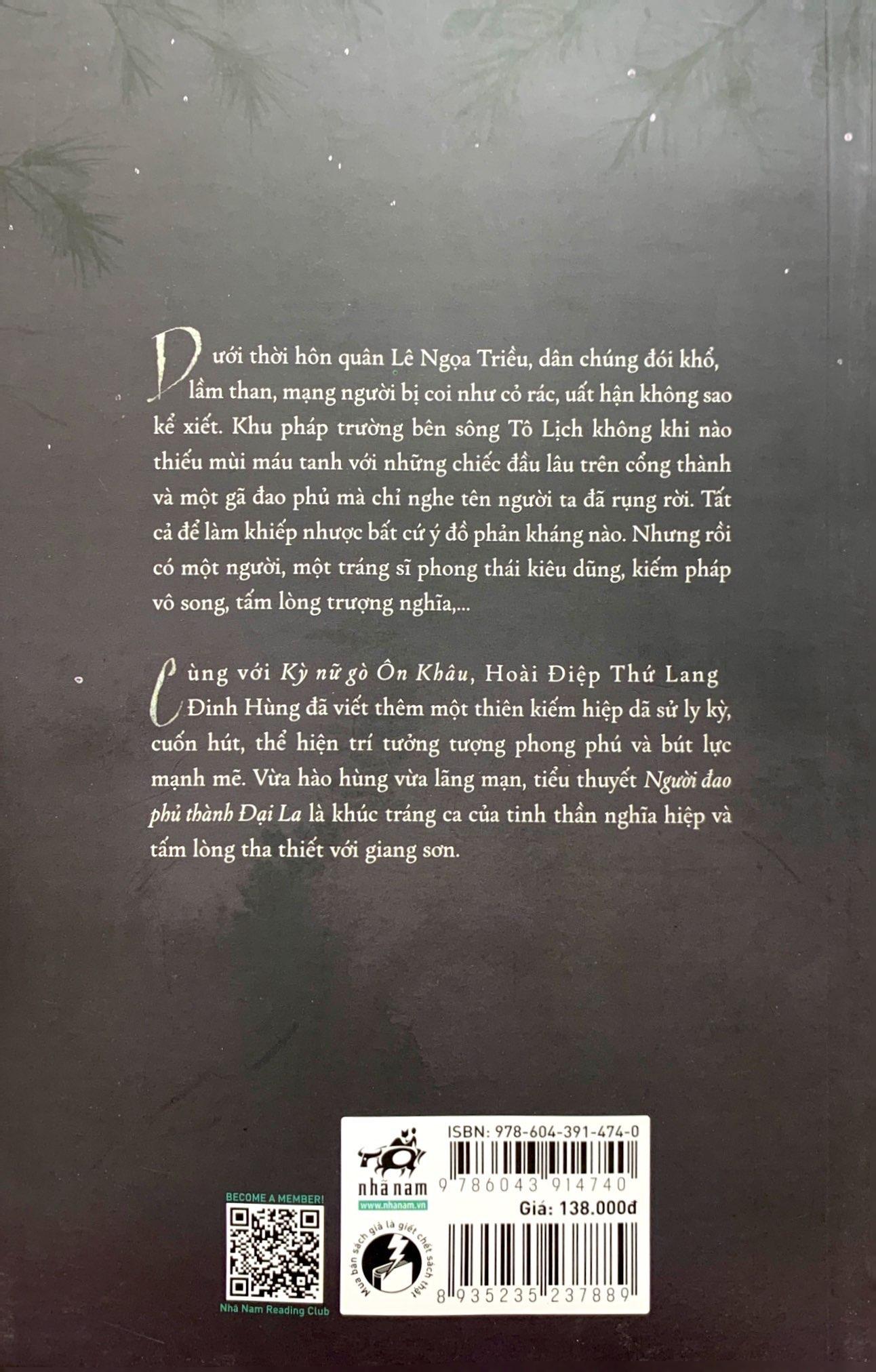 Cùng với Kỳ nữ gò Ôn Khâu, Hoài Điệp Thứ Lang Đinh Hùng đã viết thêm một thiên kiếm hiệp dã sử li kỳ, cuốn hút, thể hiện trí tưởng tượng phong phú và bút lực mạnh mẽ. Vừa hào hùng vừa lãng mạn, tiểu thuyết Người đao phủ thành Đại La là khúc tráng ca của tinh thần nghĩa hiệp và tấm lòng tha thiết với giang sơn.
