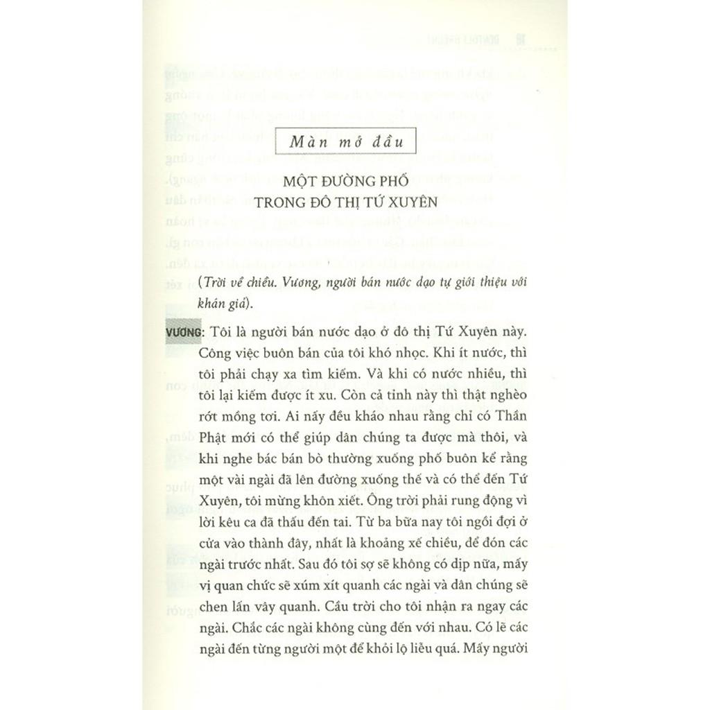 Dưới hình thức một chuyện ngụ ngôn, Brecht đưa ra vấn đề này qua sự trình bày những mâu thuẫn cá nhân và liên kết nó với sự phân tích các tương quan xã hội. Dưới thể dáng của cô gái: Thiện Tâm, Brecht chỉ cho ta thấy những mâu thuẫn xã hội của thời đại: ấy là “vừa tốt và vừa sống còn” thật khó để có thể thực hiện được.