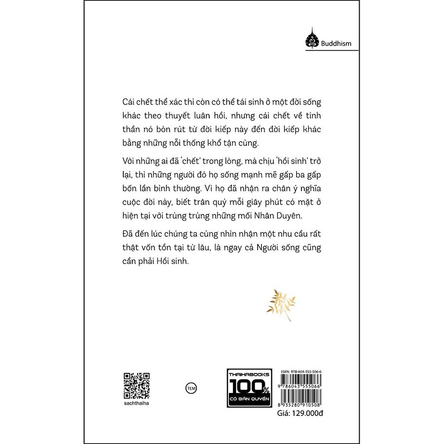 Cái chết thể xác thì còn có thể tái sinh ở một đời sống khác theo thuyết luân hồi, nhưng cái chết về tinh thần là điều rất đáng sợ, nó bòn rút từ đời kiếp này đến đời kiếp khác bằng những nỗi thống khổ tận cùng. Nhiều lắm chứ, những người chỉ đang sống ở phần thân vật lý, còn trong lòng thì đã chết lặng từ lâu rồi từ muôn hình vạn trạng những lý do trên cuộc đời. Vậy nên đã đến lúc chúng ta cùng nhìn nhận một nhu cầu rất thật vốn tồn tại từ lâu, là ngay cả Người sống cũng cần phải Hồi sinh.
