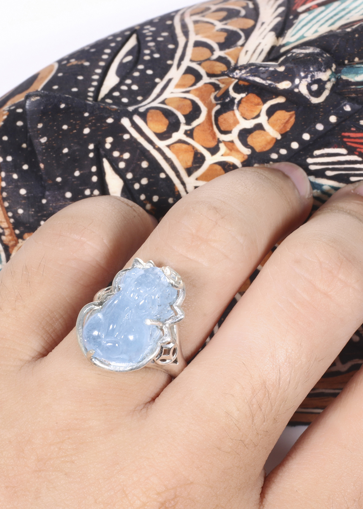 NHẪN BẠC TỲ HƯU ĐÁ HẢI LAM NGỌC: Aquarmarine là một đá quý thuộc họ Beryl, sở hữu màu xanh tuyệt đẹp của biển cả, là món quà mà nàng tiên cá dành tặng cho