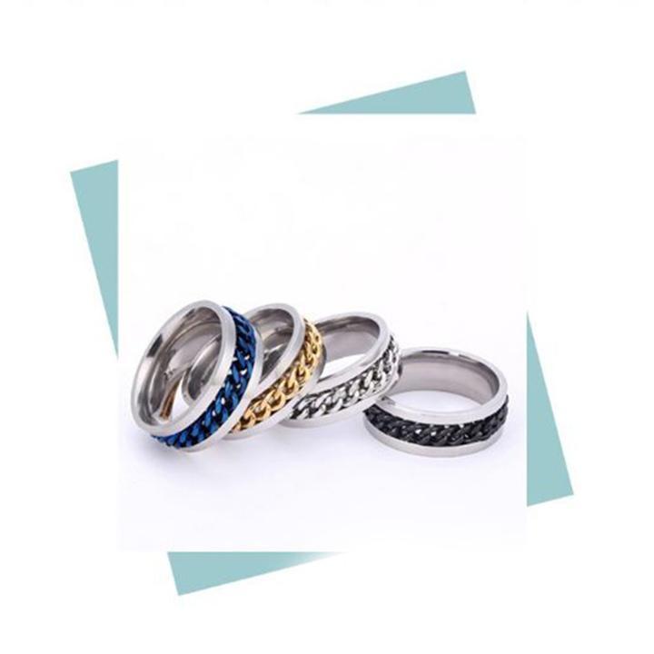 Nhẫn inox phối xích xoay nam nữ nhiều màu cao cấp thời trang thép không gỉ trangsucpt khui bia