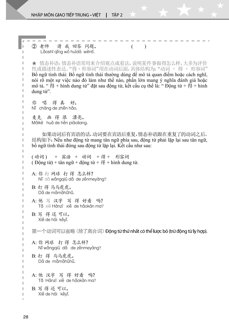 Giáo trình tiếng Trung Giao tiếp tổng hợp dành cho người Việt Nam Cuốn sách Giáo Trình Tiếng Trung Giao Tiếp Tổng Hợp Dành Cho Người Việt Nam có 15 bài, mỗi bài gồm: