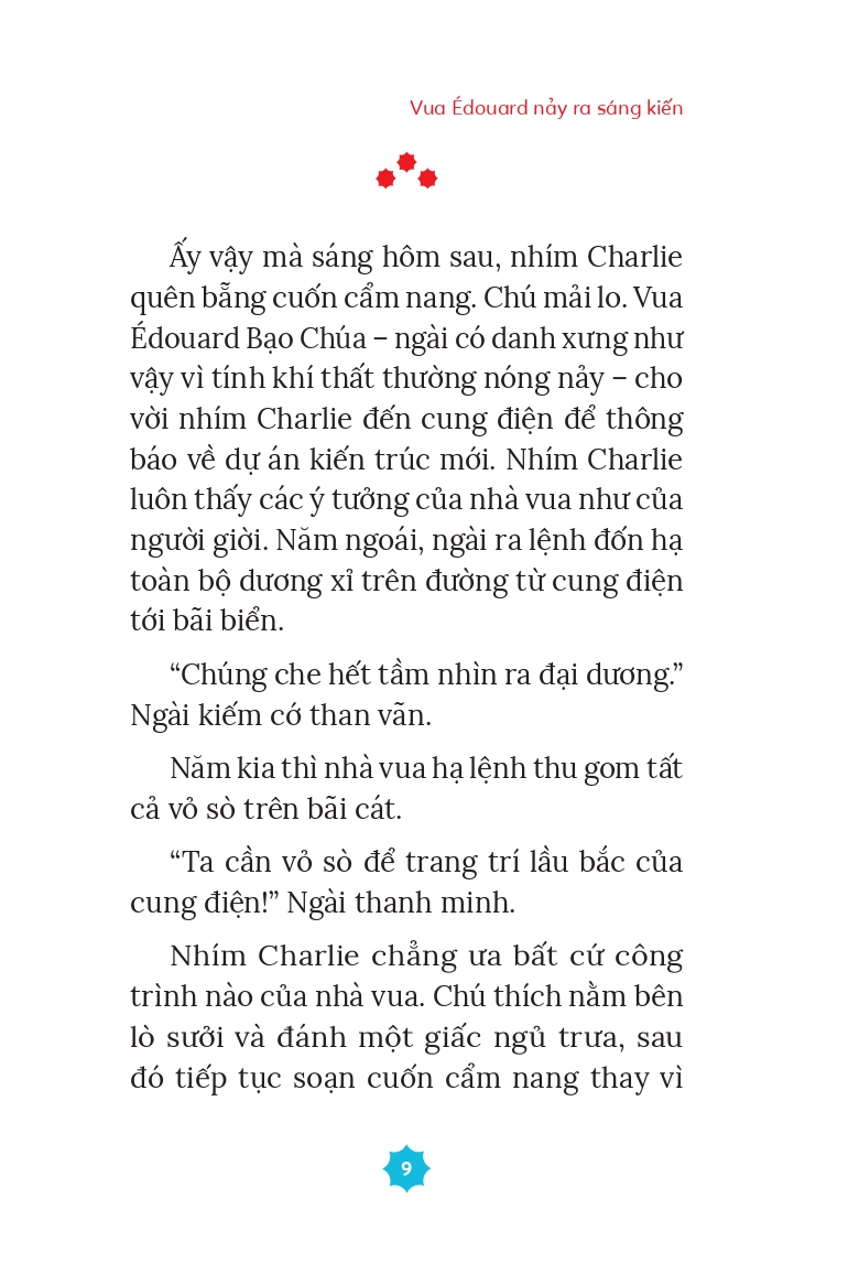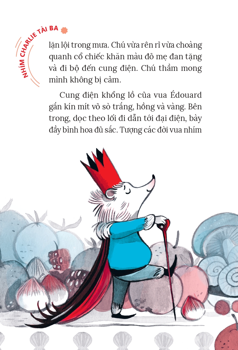 Cuộc sống trên đảo nhím của Charlie đang vui vẻ biết bao. Thì bỗng nhiên, vua tộc nhím nảy ra một ý tưởng rất… tào lao. Vương quốc nhím đối mặt lâm nguy, và Charlie phải ra tay giải cứu! Nhím Charlie tài ba là bộ truyện thiếu nhi hài hước của Callie (Pháp) với tranh minh họa của Anna Griot. Nhím Charlie là một chú nhím gia giáo. Dù đối mặt với những tình huống khó khăn đến đâu, một chú nhím gia giáo sẽ đều có cách vượt qua. Hãy cùng khám phá cẩm nang nhà gia giáo của nhím Charlie nhé!