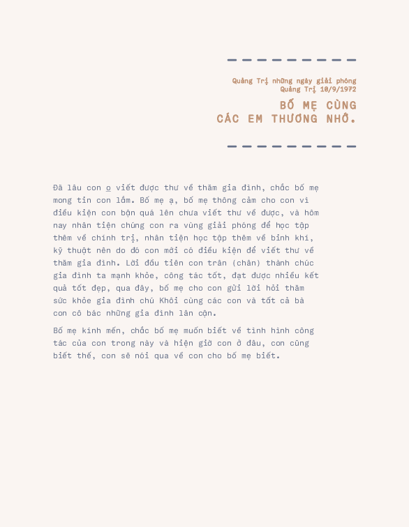 Những bức thư thấm đẫm tình yêu và sự oai hùng, thấm cả máu và mồ hôi những người lính, nước mắt những người vợ sẽ đưa chúng ta trở về những ngày ấy…