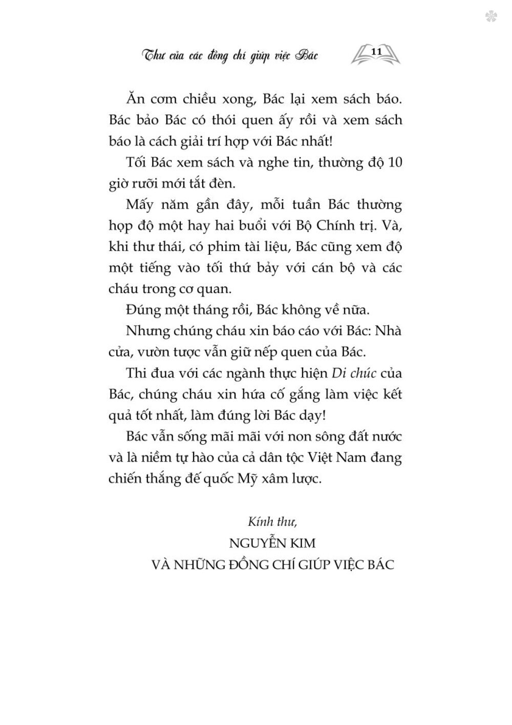Cuốn sách Những bức thư kể chuyện Bác Hồ tập hợp những bức thư được đăng trên báo Nhân Dân từ năm 1969 đến năm 1984 của đồng chí Vũ Kỳ người thư ký tận