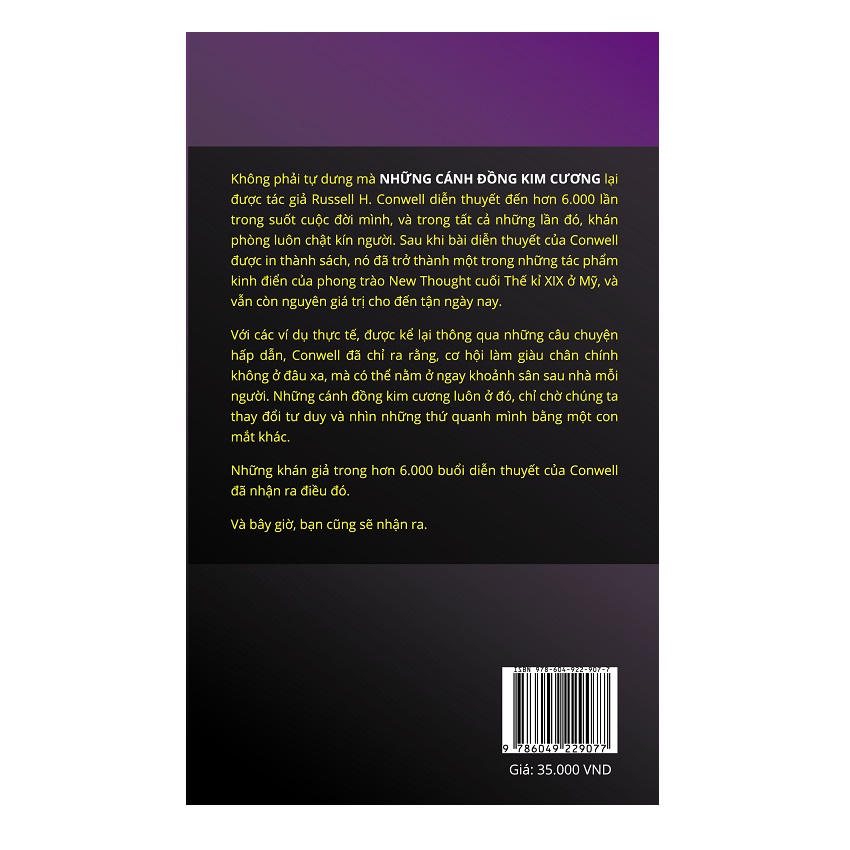 Không phải tự dưng mà NHỮNG CÁNH ĐỒNG KIM CƯƠNG lại được tác giả Russell H. Conwell diễn thuyết đến hơn 6.000 lần trong suốt cuộc đời mình, và trong tất cả những lần đó, khán phòng luôn chật kín người. Sau khi bài diễn thuyết của Conwell được in thành sách, nó đã trở thành một trong những tác phẩm kinh điển của phong trào New Thought cuối Thế kỉ XIX ở Mỹ, và vẫn còn nguyên giá trị cho đến tận ngày nay.