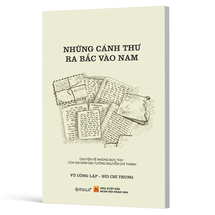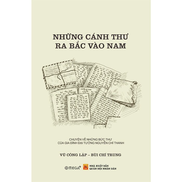Bìa sách khắc họa hình ảnh chồng thư tay, phong bì và giấy viết tay theo phong cách ký họa, gắn liền trực tiếp với nội dung thư từ giữa Đại tướng Nguyễn Chí Thanh và gia đình. Tông màu be ngà gợi nên không khí xưa cũ, hoài niệm, làm nổi bật chiều sâu tình cảm và giá trị lịch sử của tác phẩm.