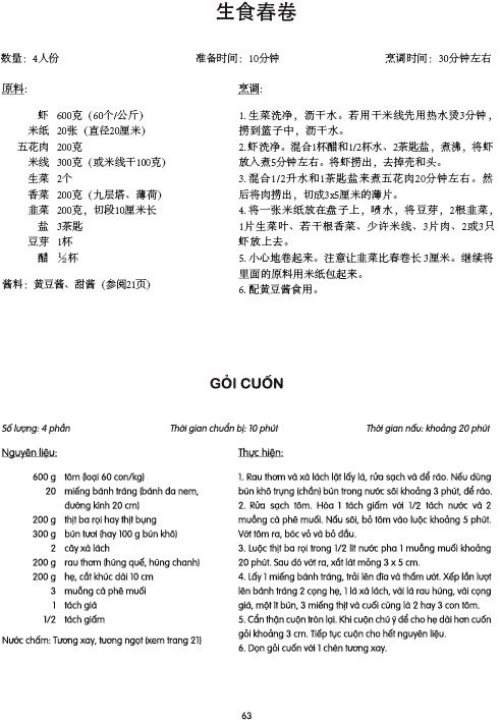 Mua tại TiktokCuốn sách Những Món Ngon Việt Nam giới thiệu cách chế biến nhiều món ăn ngon, hấp dẫn, đậm đà bản sắc dân tộc Việt Nam. Các món ăn được hướng dẫn tỉ mỉ, chi tiết bằng cả tiếng Hoa (Giản Thể) và tiếng Việt, không chỉ giúp người nội trợ yêu thích nấu ăn dễ dàng thực hiện, mà còn góp phần giới thiệu đến đông đảo độc giả nói tiếng Pháp về những món ăn truyền thống, nổi tiếng đã làm nên nét văn hóa trong ẩm thực Việt Nam như: phở bò chín, cháo gà, miến gà, hủ tíu, nem…