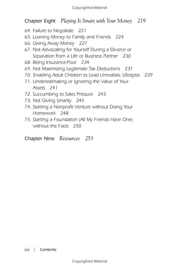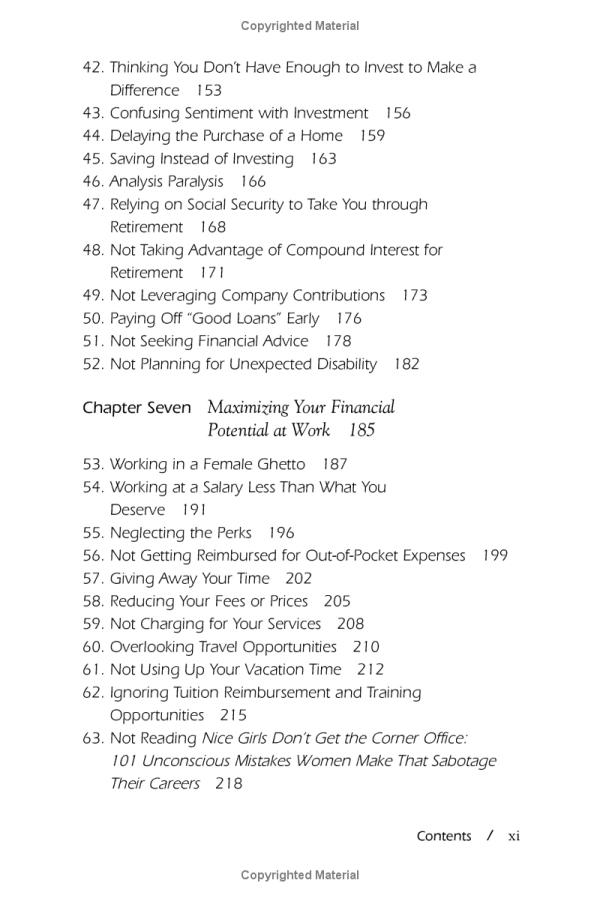 In NICE GIRLS DON'T GET RICH, Dr. Frankel offers women financial and investment advice for succeeding in life. Although women may not know it, certain behaviors and habits that they learned when they were girls are now preventing them from attaining financial fulfillment, such as: depending on men for financial advice and/or support, mistaking negotiation for confrontation, fear of math and numbers, spending indiscriminately, playing it safe and operating on financial autopilot. But unlike the many books written by financial professionals, this book isn't just about financial planning --it's about financial thinking. As a psychologist and successful business woman, Frankel examines the myths and messages women learn over time that prevent them from reaping the same financial rewards as men. Based on hundreds of interviews with ordinary women and financial experts, NICE GIRLS DON'T GET RICH points out the most common financial mistakes women make and recommends actions to achieve a life free from financial angst