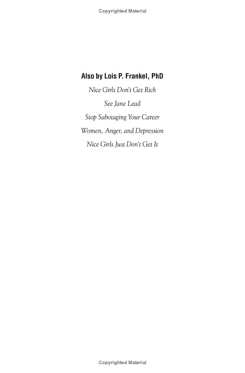 The New York Times bestseller, which for 10 years has been a must-have for women in business, is now completely revised and updated. In this new edition, internationally recognized executive coach Lois P. Frankel reveals a distinctive set of behaviors-over 130 in all-that women learn in girlhood that ultimately sabotage them as adults. She teaches you how to eliminate these unconscious mistakes that could be holding you back and offers invaluable coaching tips that can easily be incorporated into your social and business skills. The results for hundreds of thousands of women have been career opportunities they never thought possible-at every stage of their career, from entry-level to the corner office! Stop making "nice girl" errors that can become career pitfalls.