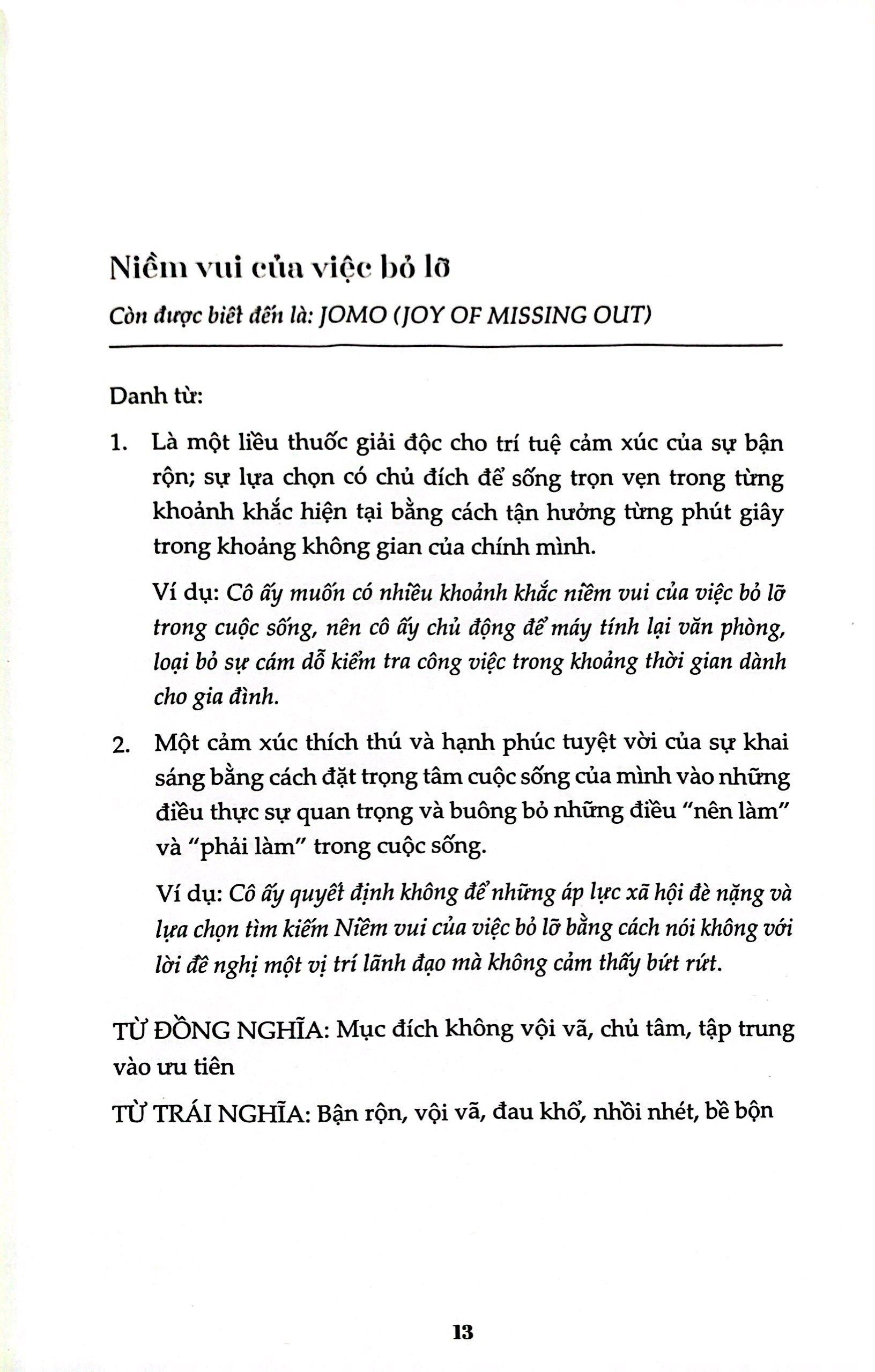 Những cuốn sách về hạnh phúc, về cân bằng cuộc sống hay tối giản tâm trí – của cải đã không còn xa lạ với chúng ta. Nhưng NIỀM VUI CỦA VIỆC BỎ LỠ mang đến cho chúng ta một góc nhìn hoàn toàn mới: đánh giá lại cuộc sống trong mỗi ngày của mình để hiểu được chúng ta đã và đang hối tiếc điều gì, đâu mới là năng suất thực sự của bản thân.
