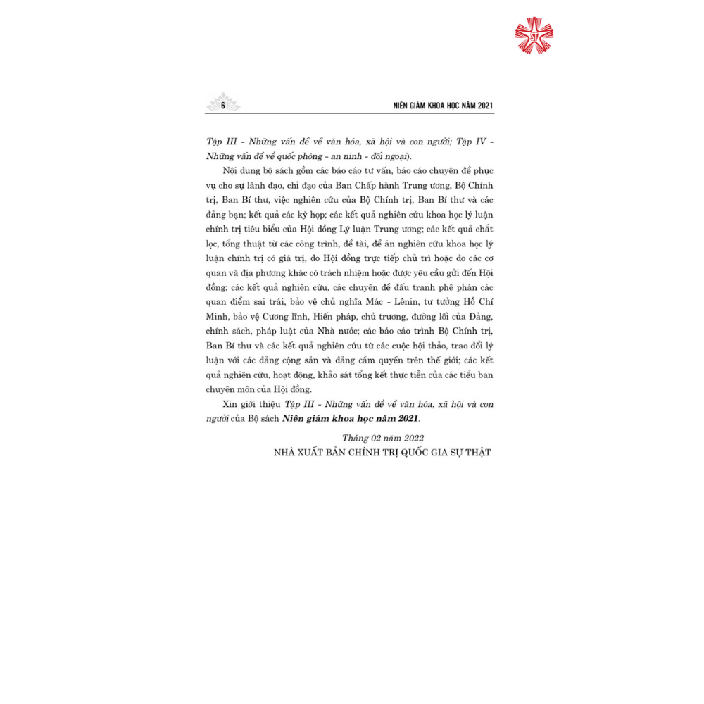 Niên Giám Khoa Học Năm 2022 ( Bộ sách gồm 4 cuốn) ------------ Niên Giám Khoa Học Năm 2022 Bộ sách gồm 4 cuốn: 1. Những vấn đề chính trị 2. Những vấn đề