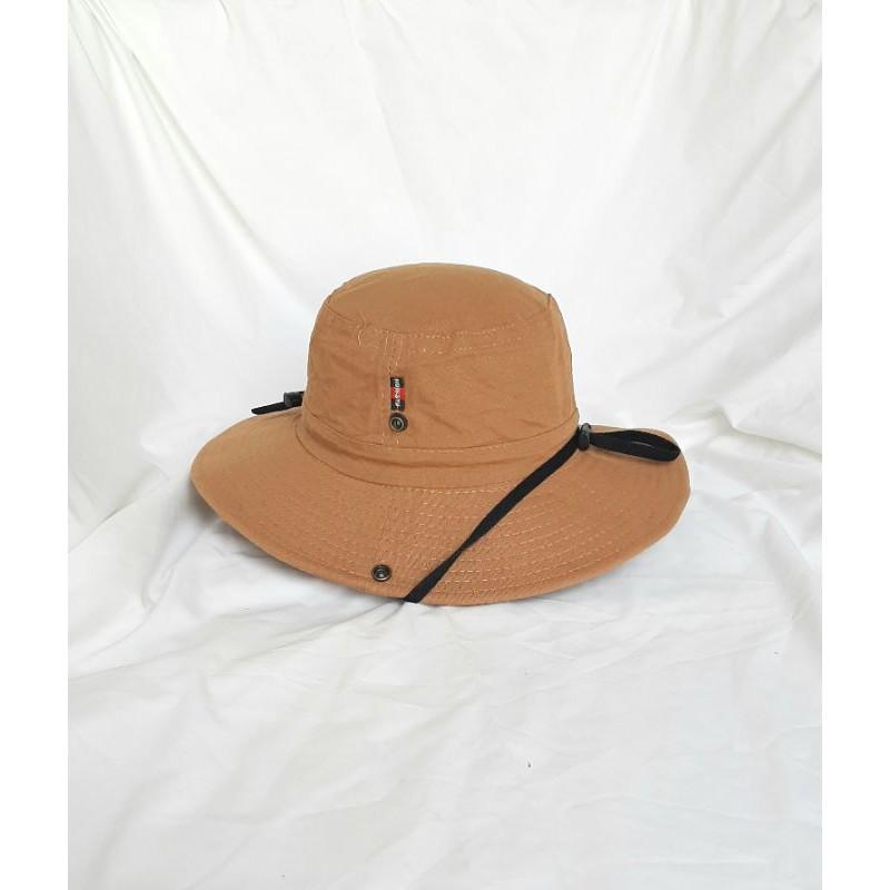 Vải Kaki dày dặn nhưng không nóng vì là 100%cotton. Có dây đeo không lo gió bay. Nút bấm kim loại 2 bên vành nón để bẻ lên cho ngầu luôn. Shop nhận thêu logo