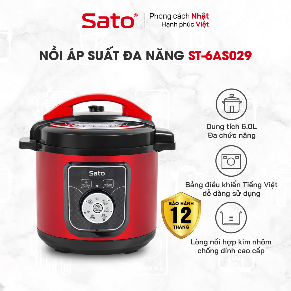 ✨Nồi áp suất đa năng SATO Việt Nhật ST-6AS025 6.0L đa chức năng nấu cơm, nấu cháo, hầm, ninh súp, giữ ấm, làm sữa chua - Miễn phí vận chuyển toàn quốc - Hàng Chính Hãng