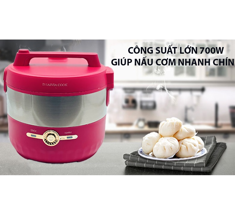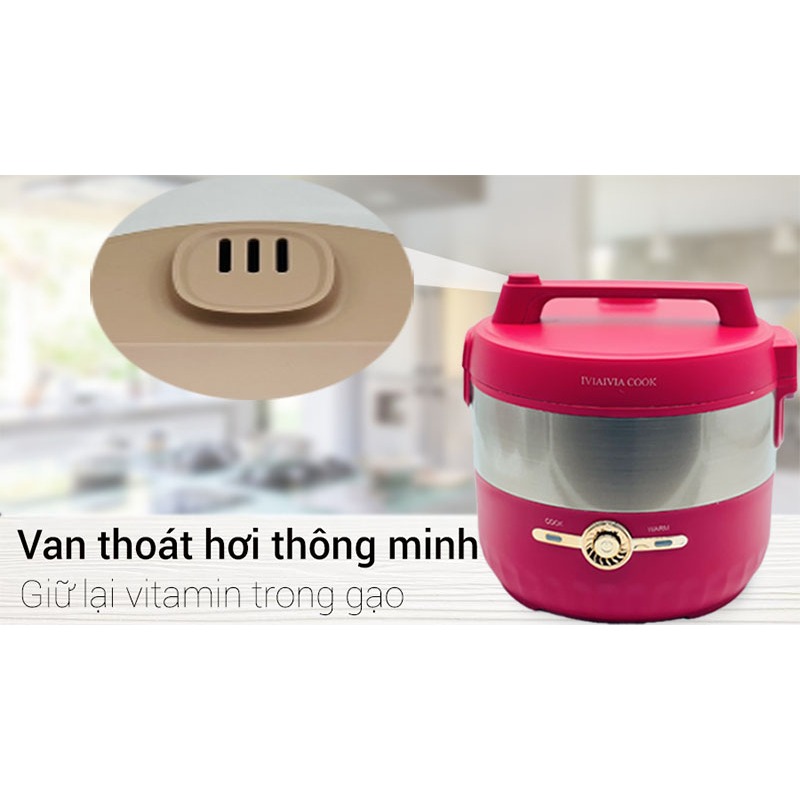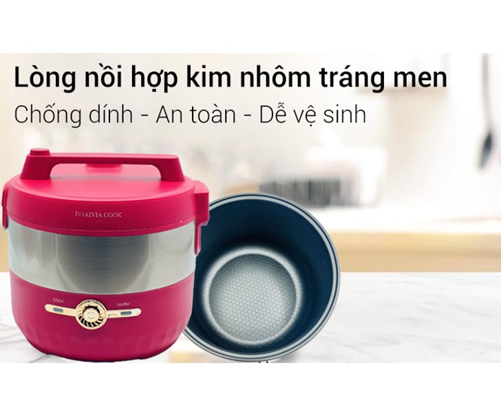 Nồi cơm điện gia đình IVIAIVIA COOK MM-NC19 được trang bị một mâm nhiệt lớn cùng công suất nồi 700W giúp nhiệt tỏa đều làm cơm chín đều, mềm và ngon hơn, dung tích nồi 1.8L giúp nấu được lượng lớn cơm phù hợp với gia đình 4 – 6 người. Nồi ứng dụng công nghệ ủ ấm 3 chiều thông minh giúp nồi có thể giữ nguyên vẹn hương vị thơm ngon và độ ấm của cơm trong suốt nhiều giờ liên tục, mang lại cho gia đình bạn những bữa cơm thơm ngon, bổ dưỡng. Nồi cơm điện gia đình này hoạt động với 2 chế độ "Nấu - Cook" và "Hâm nóng - Warm" điều chỉnh bằng nút bấm đơn giản, có đèn LED báo hiệu dễ quan sát, nắp nồi cũng được mở dễ dàng với 1 nút ấn phía trên tay cầm. Nồi có tính năng an toàn tự ngắt khi quá nhiệt quá áp, ngoài nấu cơm ra bạn có thể sử dụng để nấu mì, nấu lẩu, kho cá, thịt, hâm nóng, hầm, hấp, luộc thức ăn dễ dàng hơn.