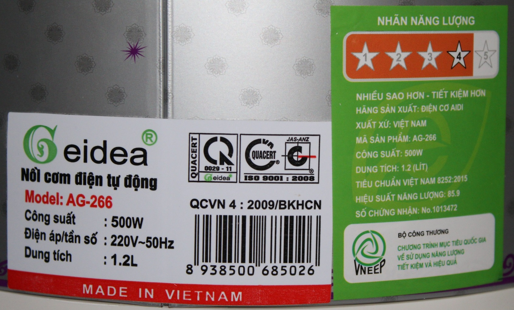 Lưu Ý: Giao Màu Ngẫu Nhiên Tùy Đợt Hàng Nhập Model MR-SM 09K Tên hàng Nồi cơm điện Aidi Dung tích 1.8L Công suất khi đun 700W Công suất khi giữ ấm 40W Điện áp