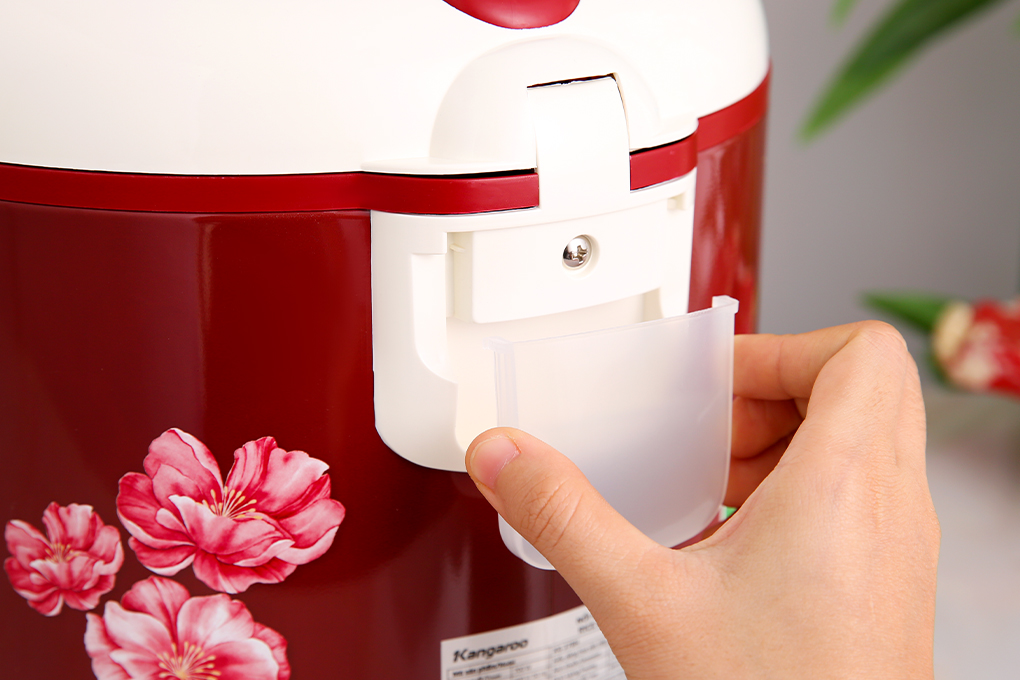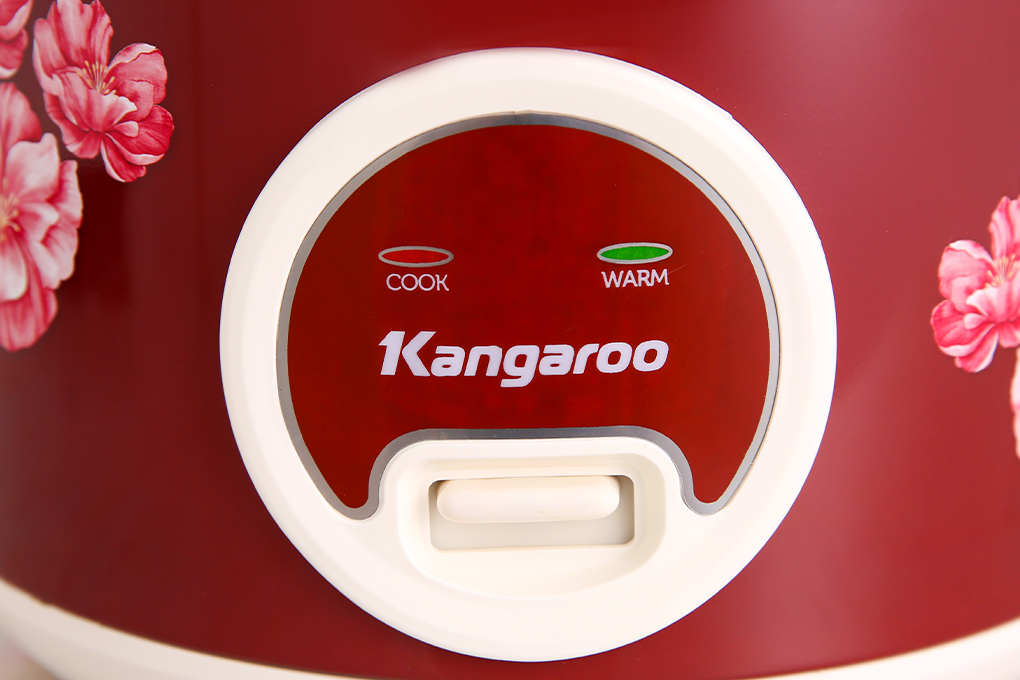 Nồi cơm nắp gài Kangaroo kiểu dáng đơn giản, họa tiết hoa Hàn Quốc trên thân nồi đẹp mắt