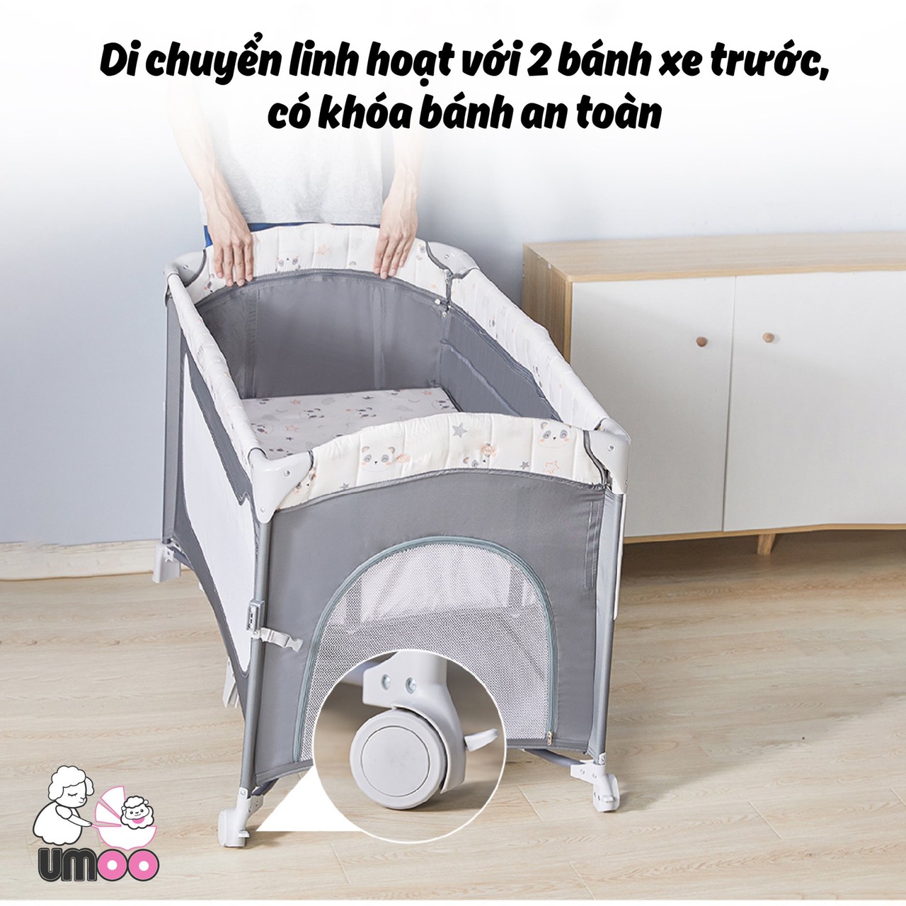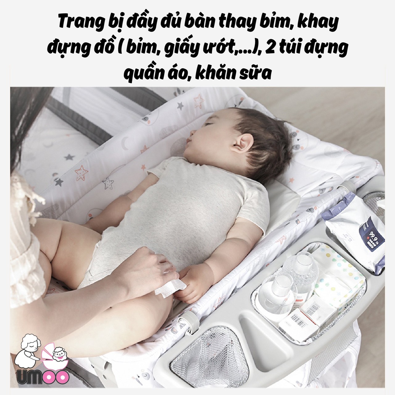 Nôi cũi vải gấp gọn đa năng umoo um08108 chính hãng sang chảnh SIÊU PHẨM TRONG LÀNG BỈM SỮA