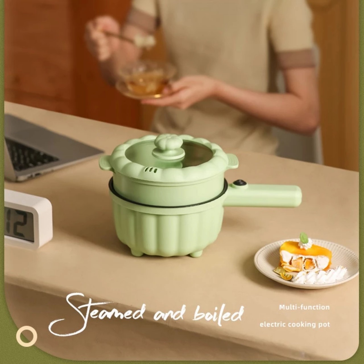 ✨Nồi Điện Mini 2 Đa Chức Năng Kèm Lồng Hấp, Ca Mỳ Tay Cầm Nồi Bí Ngô 2 Tầng Nấu Cơm, Chiên, Xào, Rán Tiện Lợi - Hàng Chính Hãng MINIIN