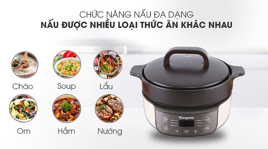 Nồi hầm dưỡng sinh Kangaroo KG3SC1 có tới 8 công dụng nấu