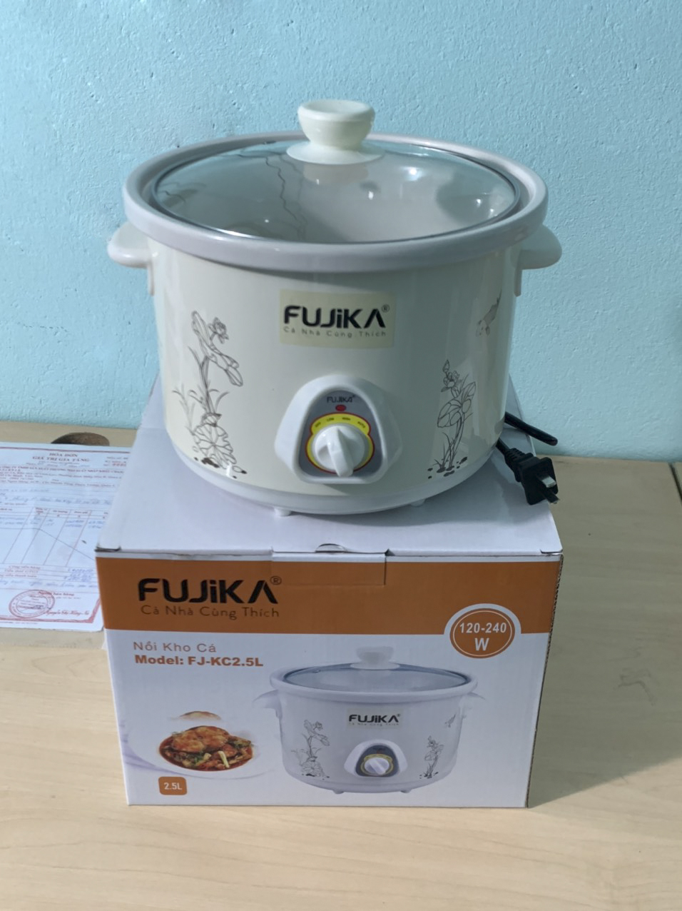 THÔNG SỐ KỸ THUẬT: Tên sản phẩm: Nồi Kho Cá Thịt,Nấu Chậm,Nấu Cháo,Nồi Tiềm 2.5L Fujika KC25 Màu Vàng Hoạt Tiết-Hàng chính hãng Điện áp: 220V - 50Hz Công suất: 240W Dung tích nồi: 2.5L