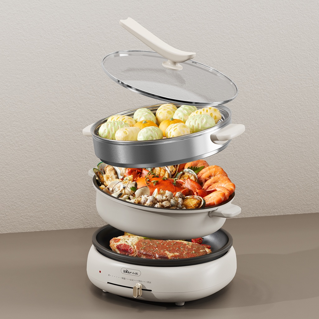 Nồi Lẩu Nướng Hấp Đa Năng Bear 4 Lít 3 in 1 | Xuân Malai