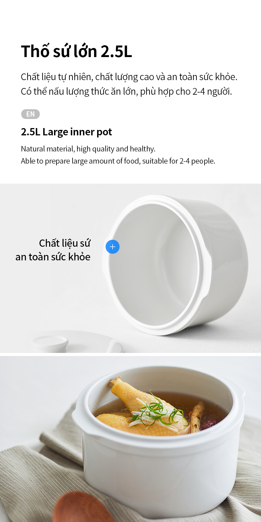 Đặc điểm nổi bật - Dung tích 3 lít thích hợp sử dụng nấu cháo, súp, món ninh/hầm,... cho trẻ nhỏ, người già. - Công suất 255W kết hợp phương pháp gia nhiệt quanh lòng nồi, chế