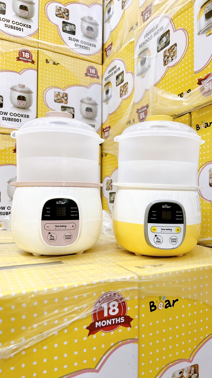- Đối với các loại thực phẩm dễ biến chất khi hầm lâu hoặc trong điều kiện thời tiết nóng nực, vui lòng đặt thời gian hẹn trước ở nồi nấu cháo chậm Bear 0.8L không quá dài, tránh gây biến chất cho thực phẩm. Lưu ý khi sử dụng Nồi nấu chậm Bear 0,8L – SUBE001Thông tin chi tiết của nồi nấu chậm Bear 0,8L – SUBE001