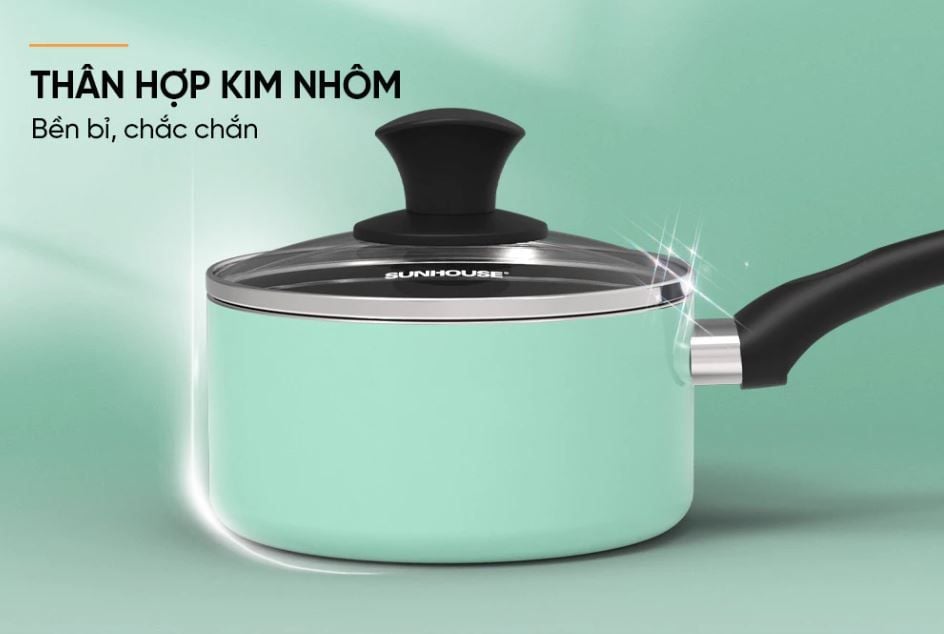 - Nồi Quấy Bột Chống Dính Sunhouse SHG MP 14 dùng để nấu cháo bột và thức ăn cho trẻ, được làm bằng hợp kim nhôm quốc tế A3003, bên trong phủ lớp chống dính.