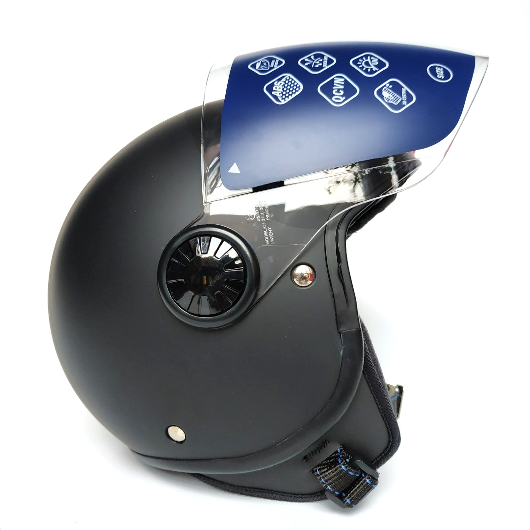 THIẾT KẾ THÔNG MINH - Phong cách thiết kế: mũ kiểu 3/4 kèm kính dài, mũ được thiết kế dáng tròn, đi kèm 2 miếng ốp má, giúp tăng thêm hiệu quả bao phủ, bảo