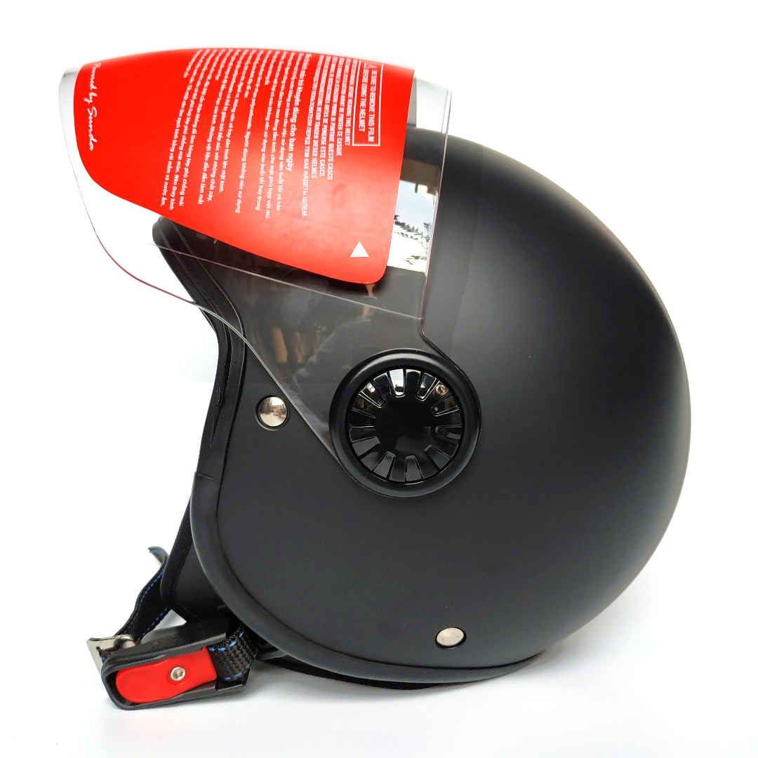 Mũ bảo hiểm nửa đầu có kính Sunda 180B tem là phụ kiện không thể thiếu khi đi xe mô tô, xe máy, mang lại sự an toàn và phong cách thời trang cho người sử