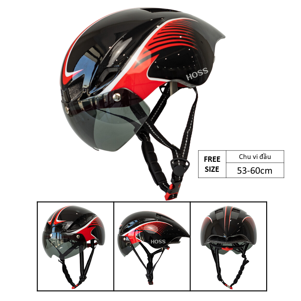 ✨Nón Bảo Hiểm Thể Thao HOSS ATB31 Siêu Nhẹ Chống Nước, kính hít nam châm tăng đưa chỉnh size cho Nam Nữ