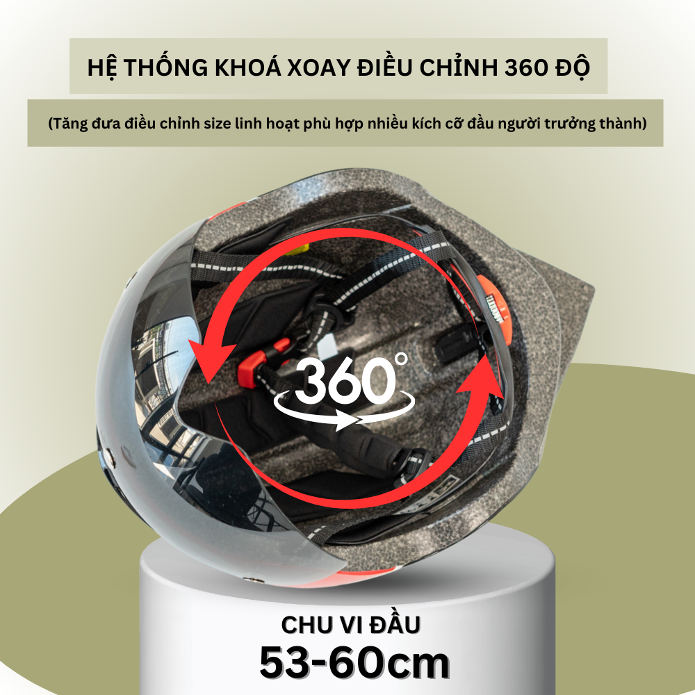 Mũ được trang bị kèm một kính râm giúp tránh gió tránh bụi rất tốt, chống chói và mỏi mắt khi đi trời nắng. Kính được liên kết với mũ bằng 3 điểm nam châm cực mạnh, có thể dễ dàng tháo ra hoặc lắp vào đơn giản.