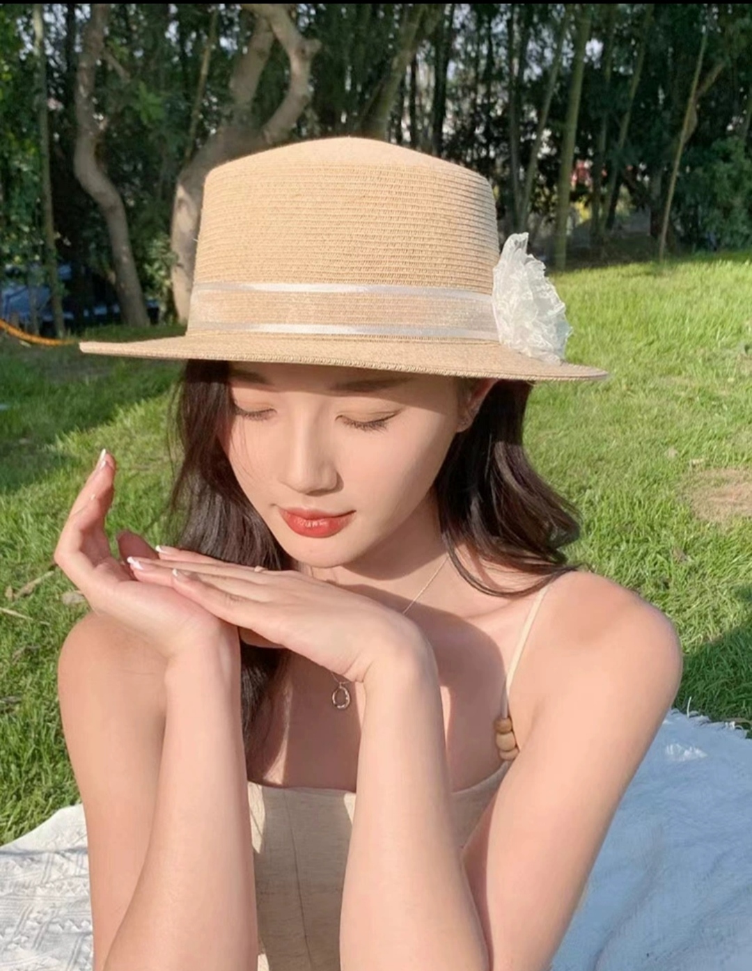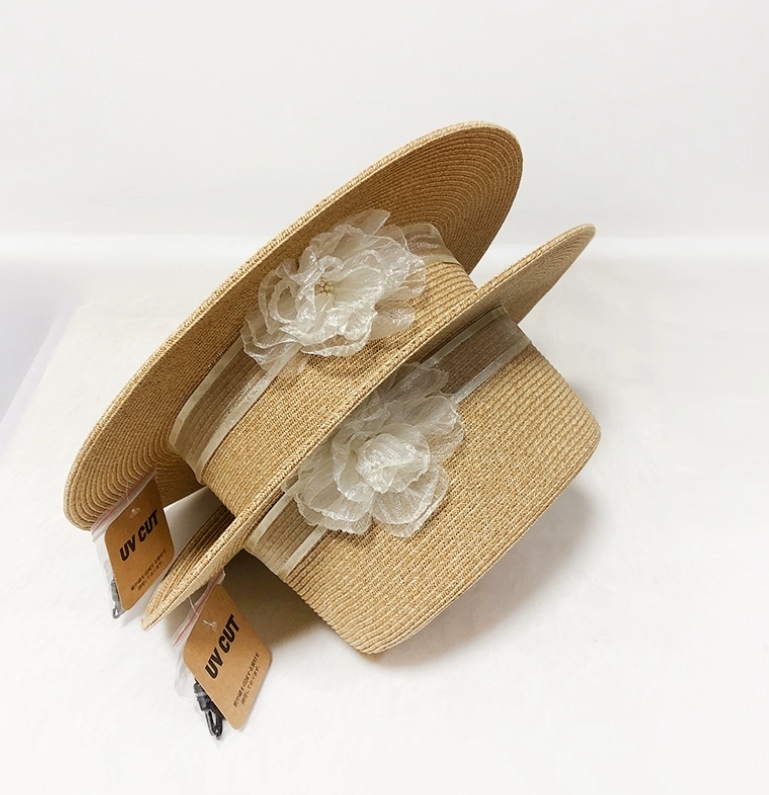 Mũ cói rơm vành phẳng nữ mùa hè phiên bản Hàn Quốc chống nắng UV cho kỳ nghỉ Nón đi biển Paris thời trang hàng đầu Pháp Chất liệu cói